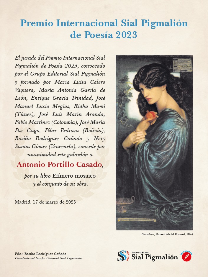 Video de la presentación y entrega del Premio Internacional de Poesía Sial Pigmalión 2023 (autor José Belló Aliaga):