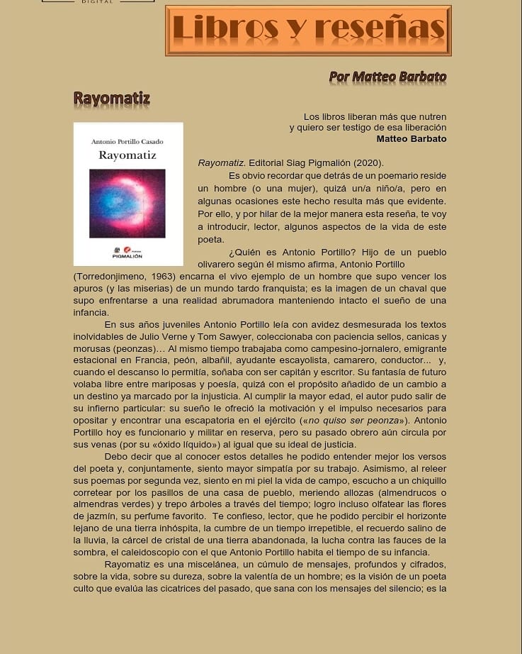 Entrevista al Poeta Antonio Portillo Casado Con Motivo de la Publicación de Rayomatiz