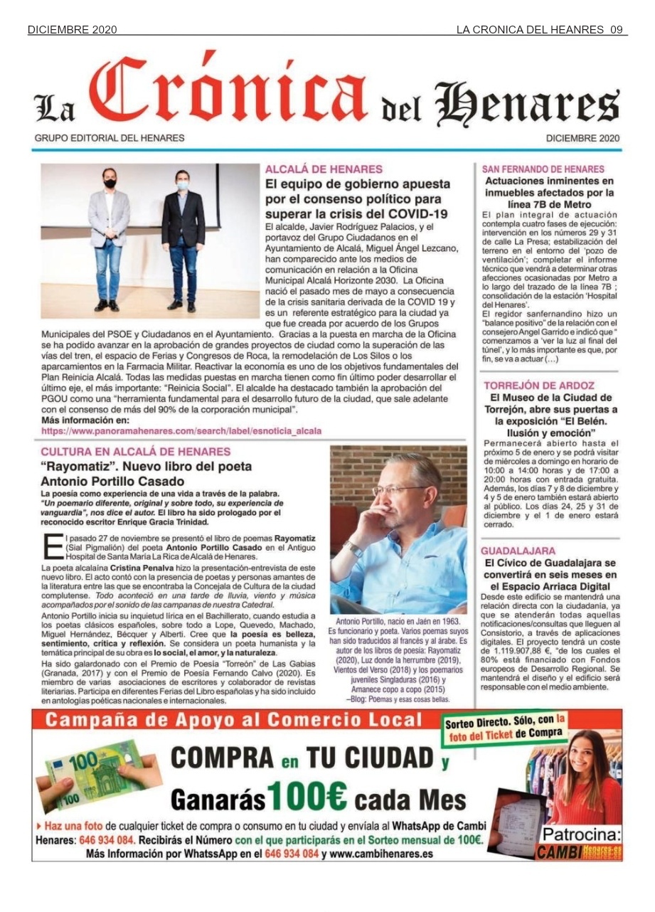 Mi agradecimiento al diario La Crónica del Henares por la reseña sobre la presentación de mi nuevo libro Rayomatiz el pasado 27 de noviembre en Alcalá de Henares.